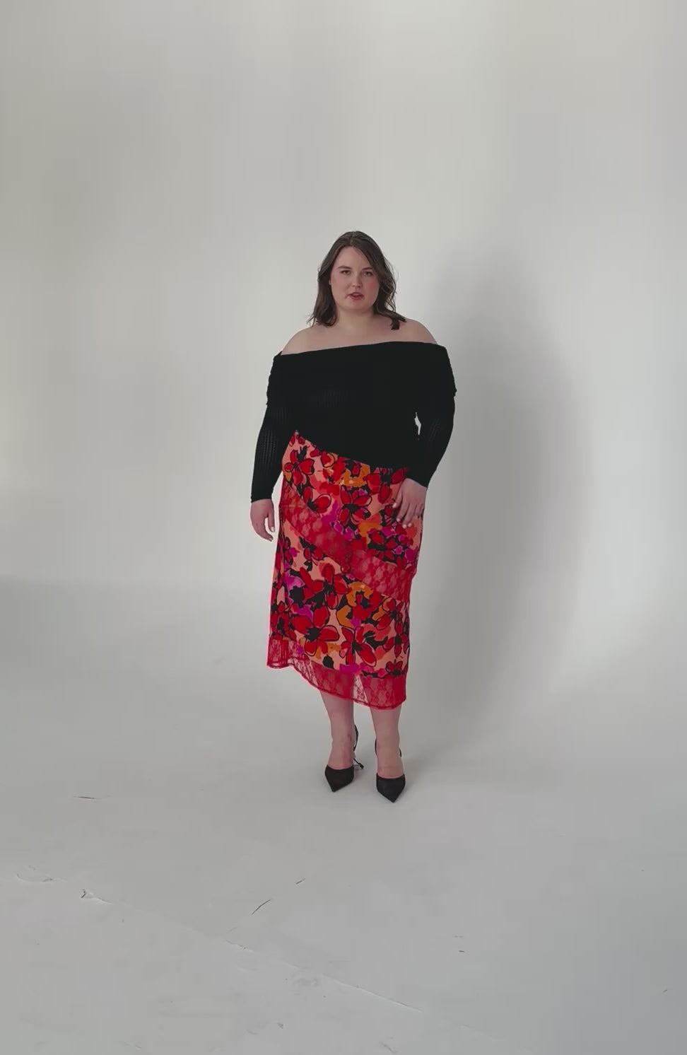 Floral Crepe & Lace Midi Skirt