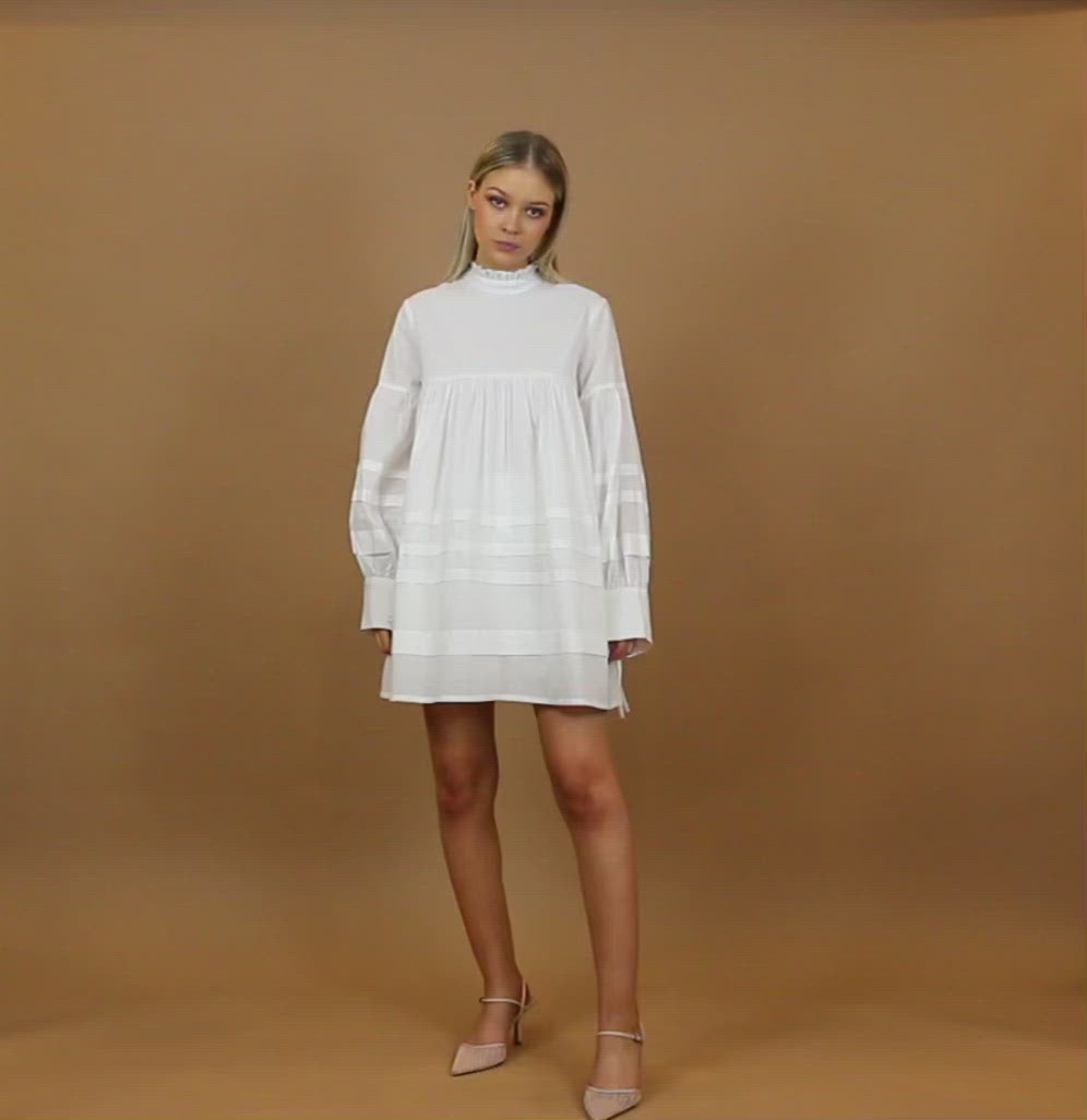 This Layered Tunic is a relaxed-fit blouse with a mock neck, subtle striped detailing and empire waist. It’s made from 100% Cotton to keep you cool throughout the summer. We love it paired back to denim cut-offs or a white trouser short for a barely-there look.